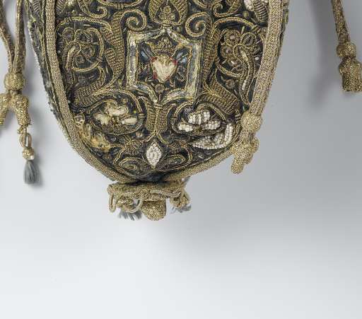 Above is an example of a pouch with braids along for seam finishing. The braids on this one look like finger loop braiding. Dutch circa 1617/1622